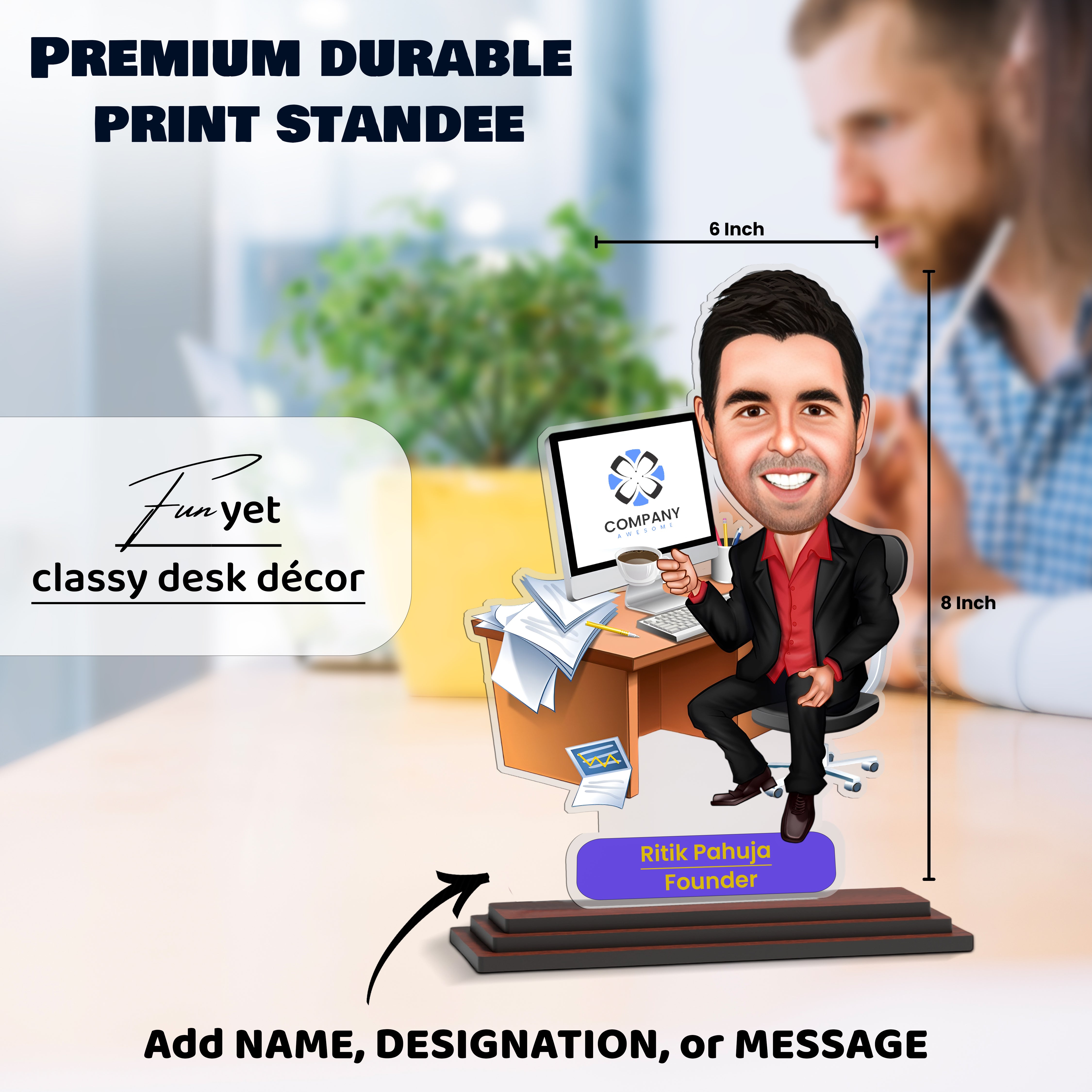 Personalized Photo Caricature for Boss – Custom Name Caricature Standee