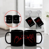 Anniversary Combo-Black Mugs & Keychains (Set of 2) with His & Her Design & Name Printed.