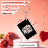 Stylish Anniversary Gift Set- Includes a black ceramic mug and a keychain with an engraved "Happy Anniversary" quote, perfect for celebrating love.