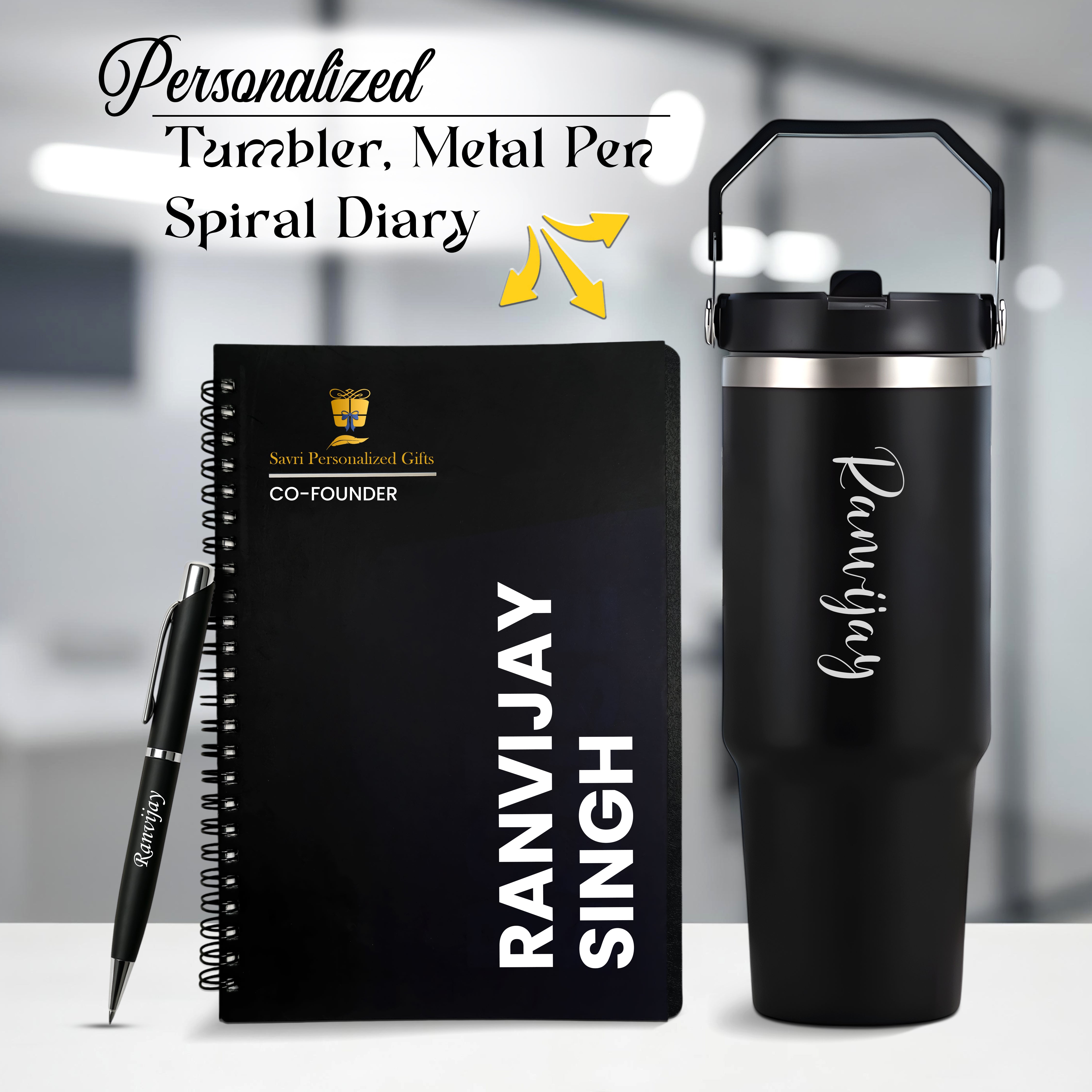 Customized Premium Gift Set with Pen, Spiral Diary & 900 ML Tumbler.