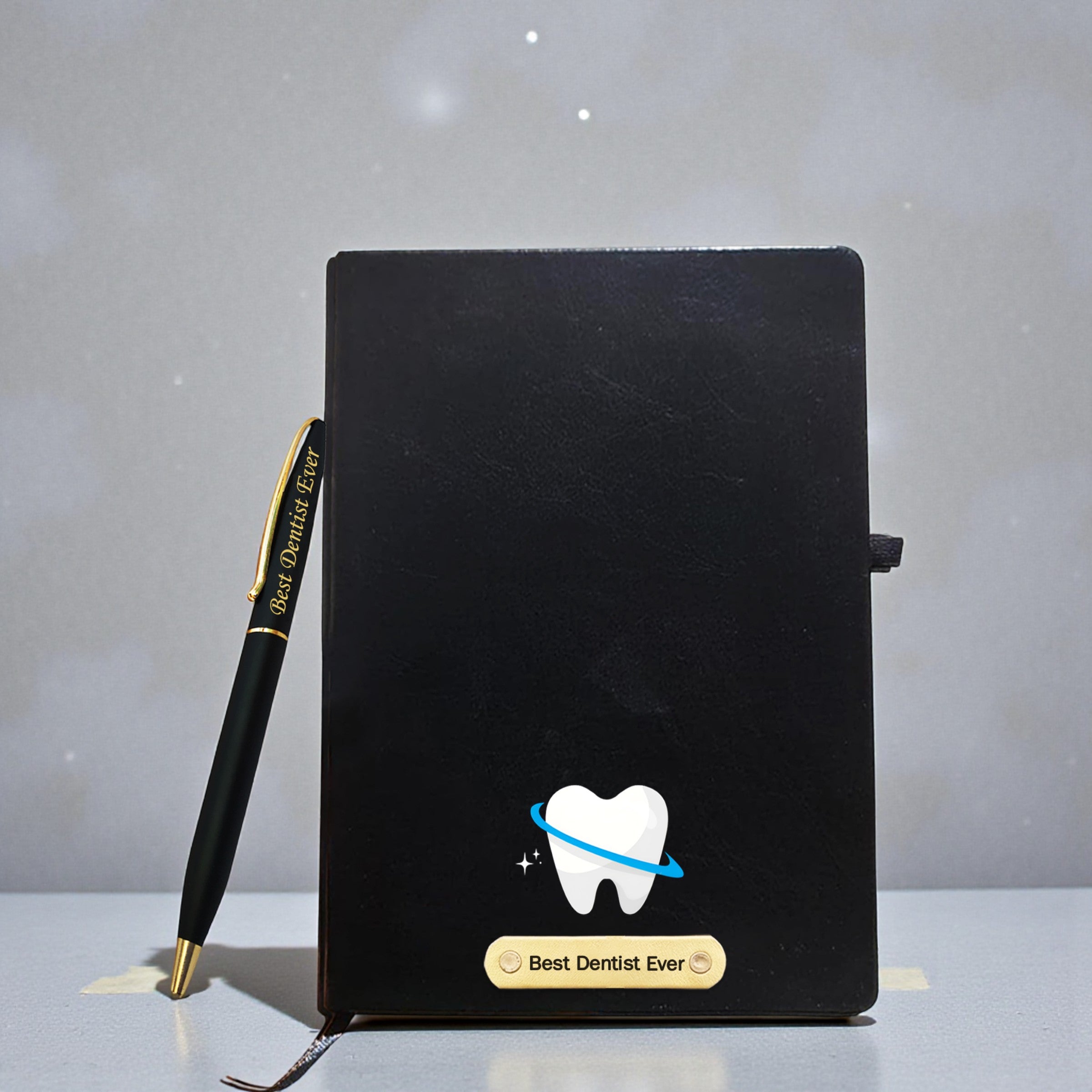 Dentist Gift Combo – Black-Gold Pen & Diary with ‘Best Dentist Ever'.
