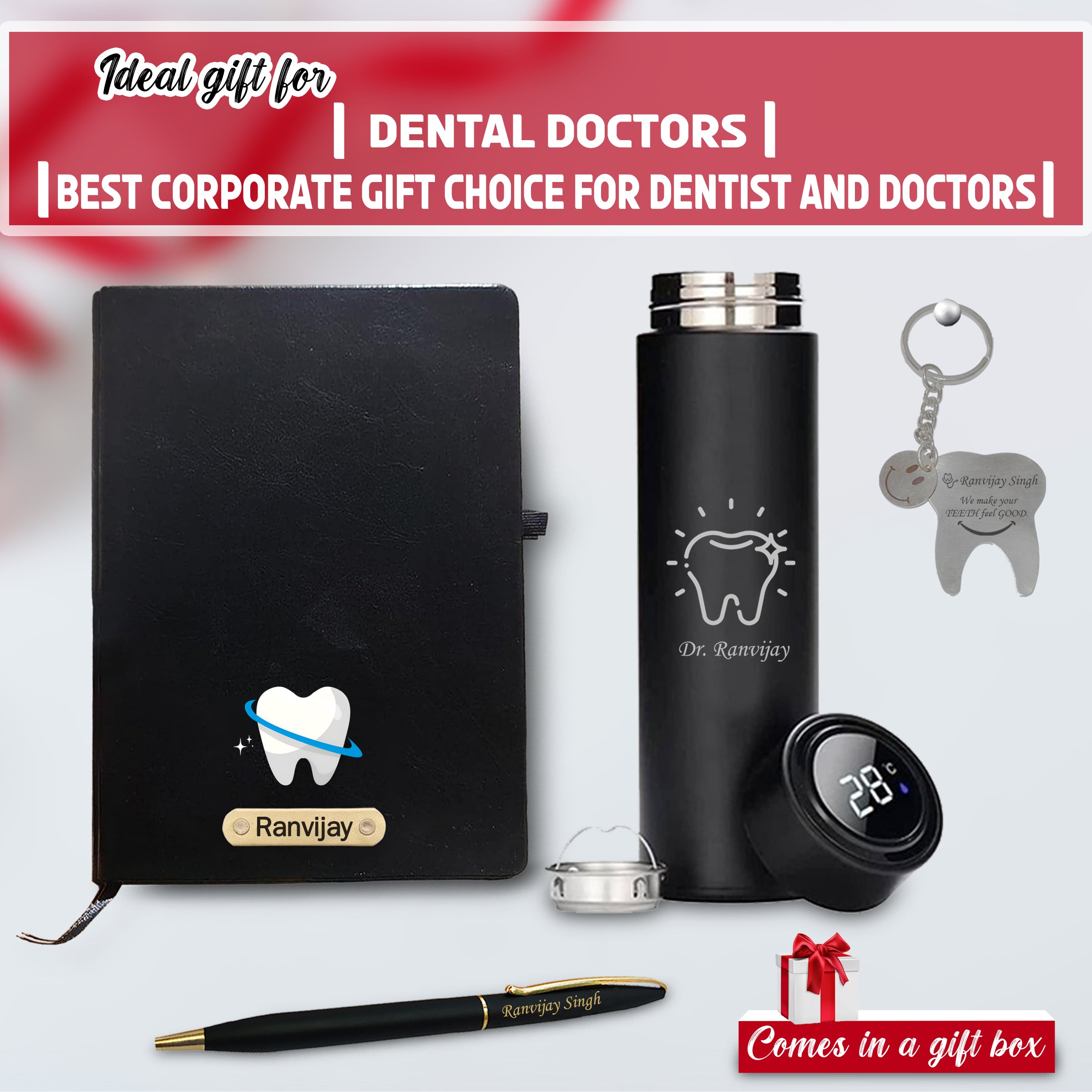 Customized Dentist Gift Set – Keychain, Pen, Bottle & Diary with Name.