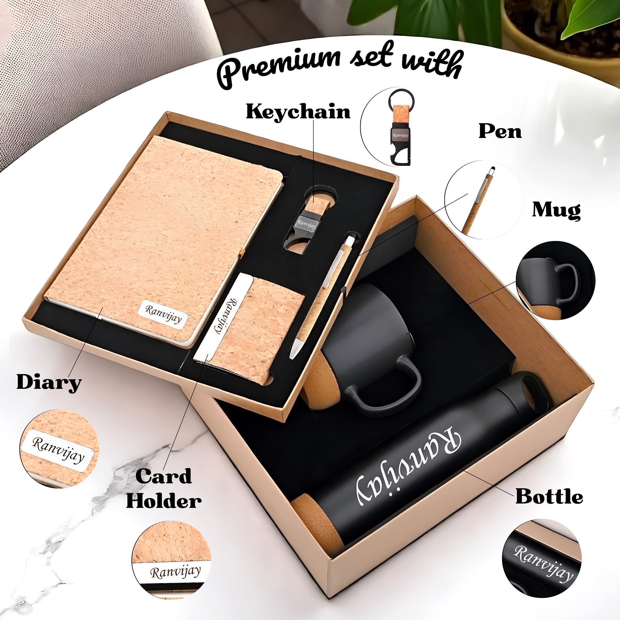 Includes non-dated diary, pen, mug, bottle, keychain, and cardholder