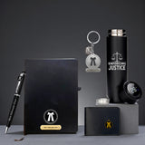 Includes a keychain, black bottle with an advocate logo, wallet with an advocate charm, and an engraved "World's Best Advocate" pen, all tailored for legal professionals.