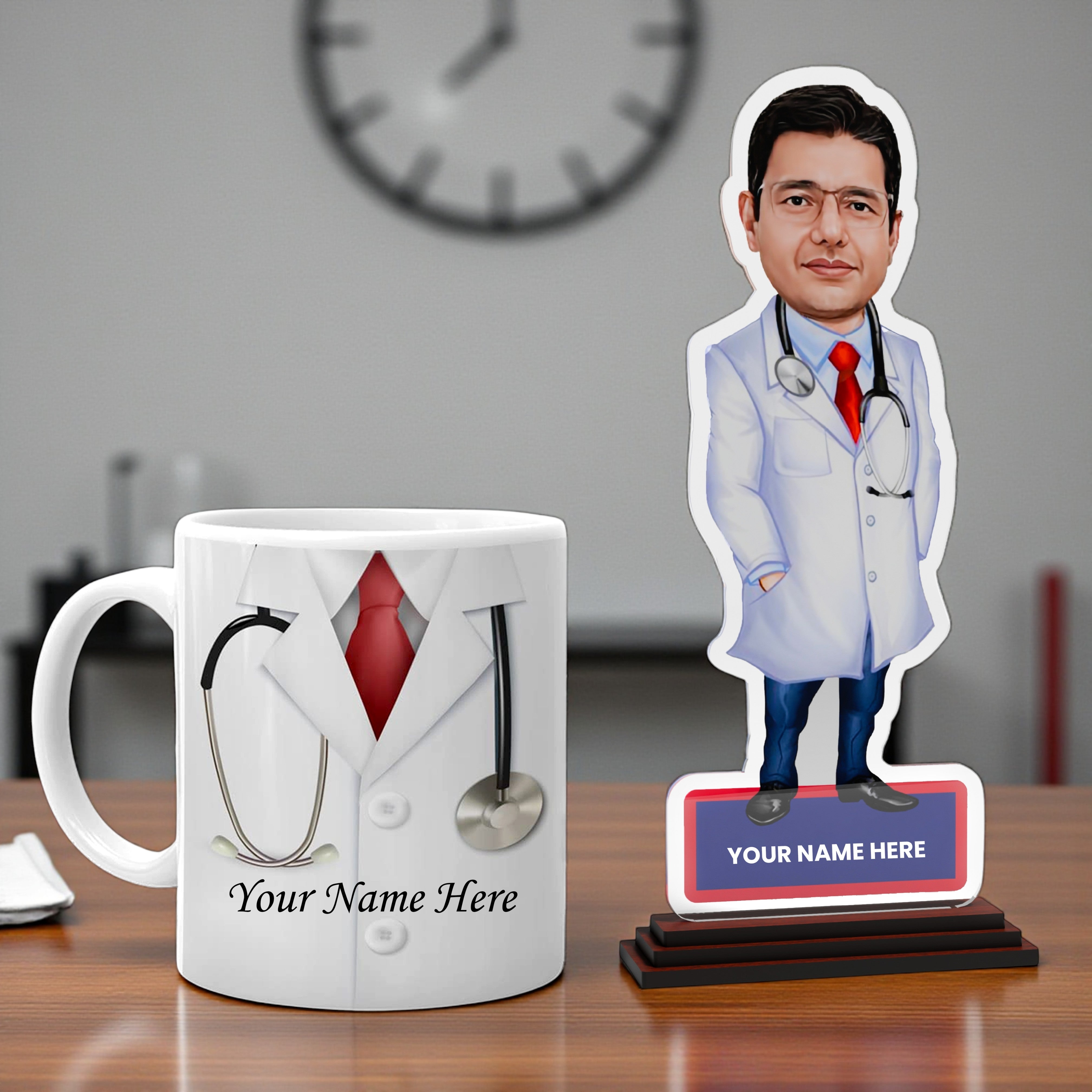 Personalized Acrylic Caricature for Doctors 6x8 Inch with Custom Name Mug.