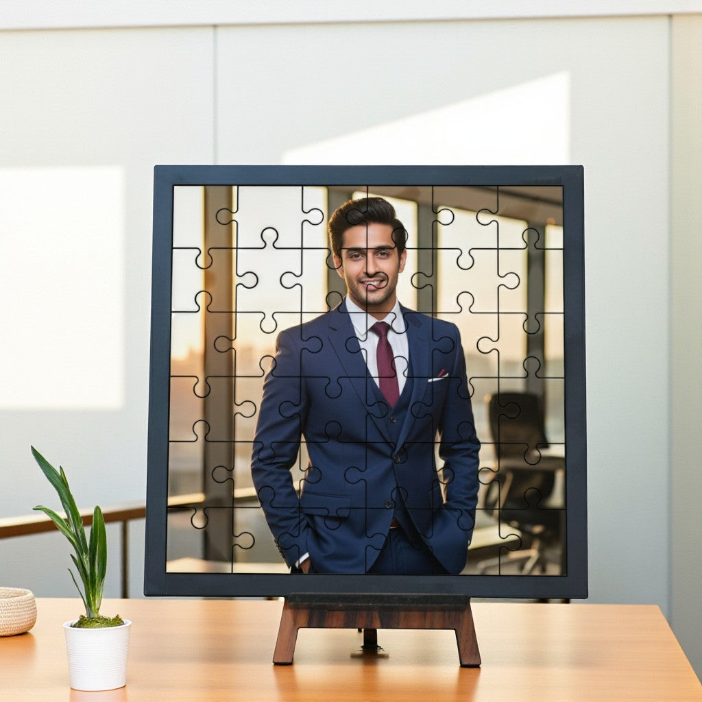 Customized Wooden Puzzle Photo Frame with Stand (8x8 Inches)