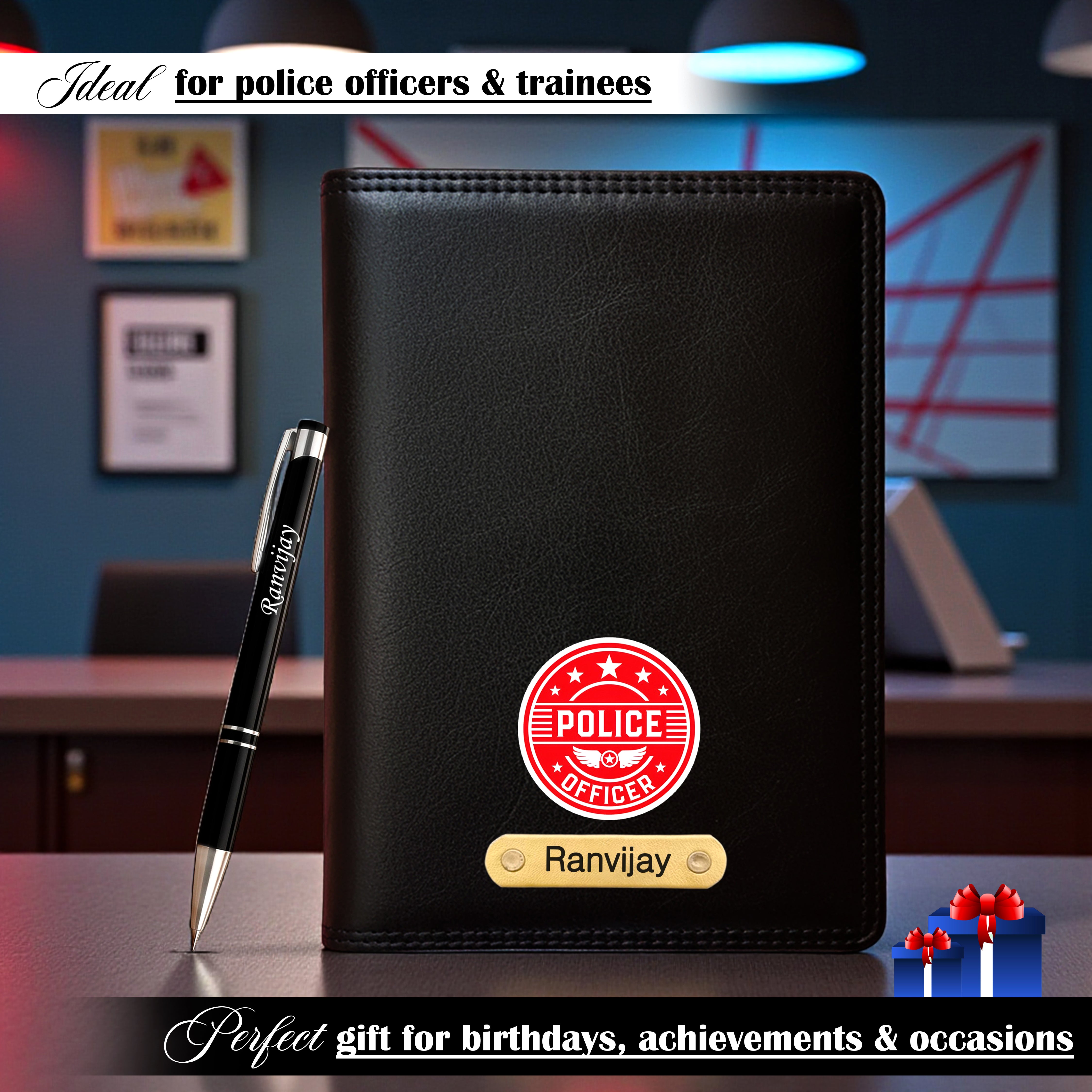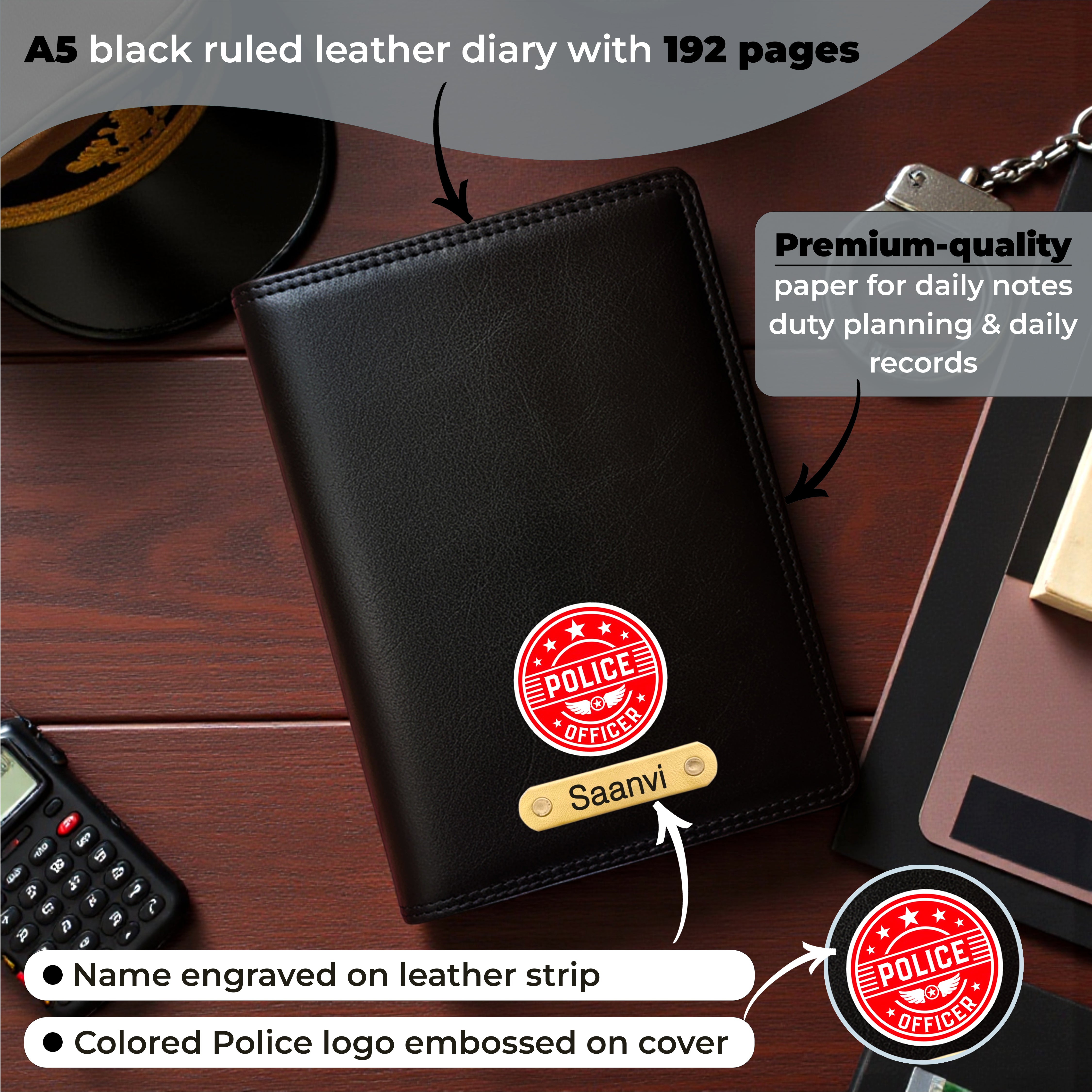 Police badge/logo embossed on the cover