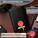 A5 black ruled leather diary with 192 pages