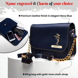• Stylish Chain Sling Bag for Women: Trendy and functional with adjustable strap & compartments, engraved with her name for a personalized fashion statement.