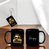 Birthday Gift Combo – Black Ceramic Coffee Mug & Keychain with 'Happy Birthday' Quote & Custom Name