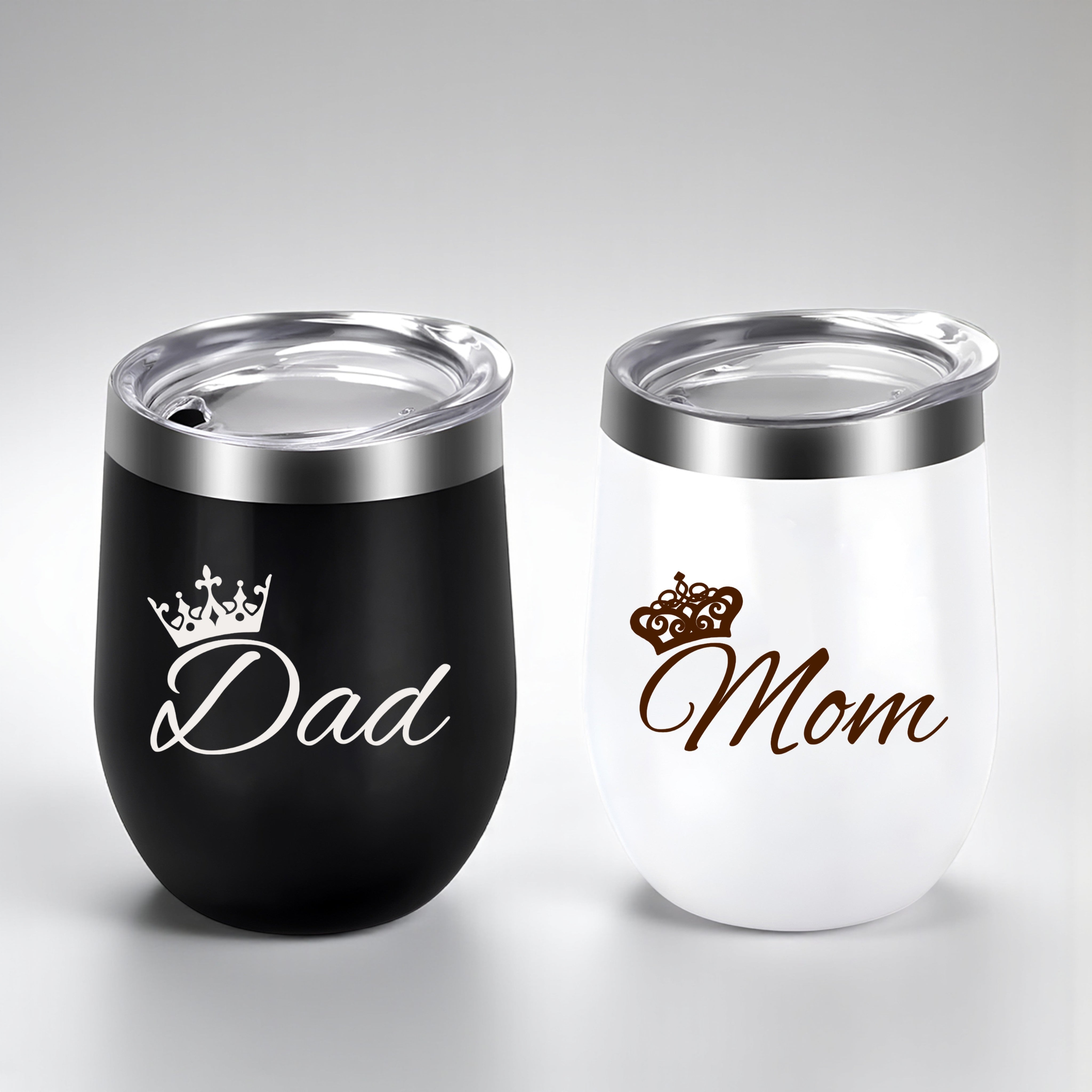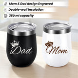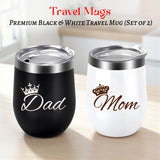 • Set of 2 Insulated Mugs: Includes one black “Dad” mug and one white “Mom” mug – a perfect matching gift for parents.