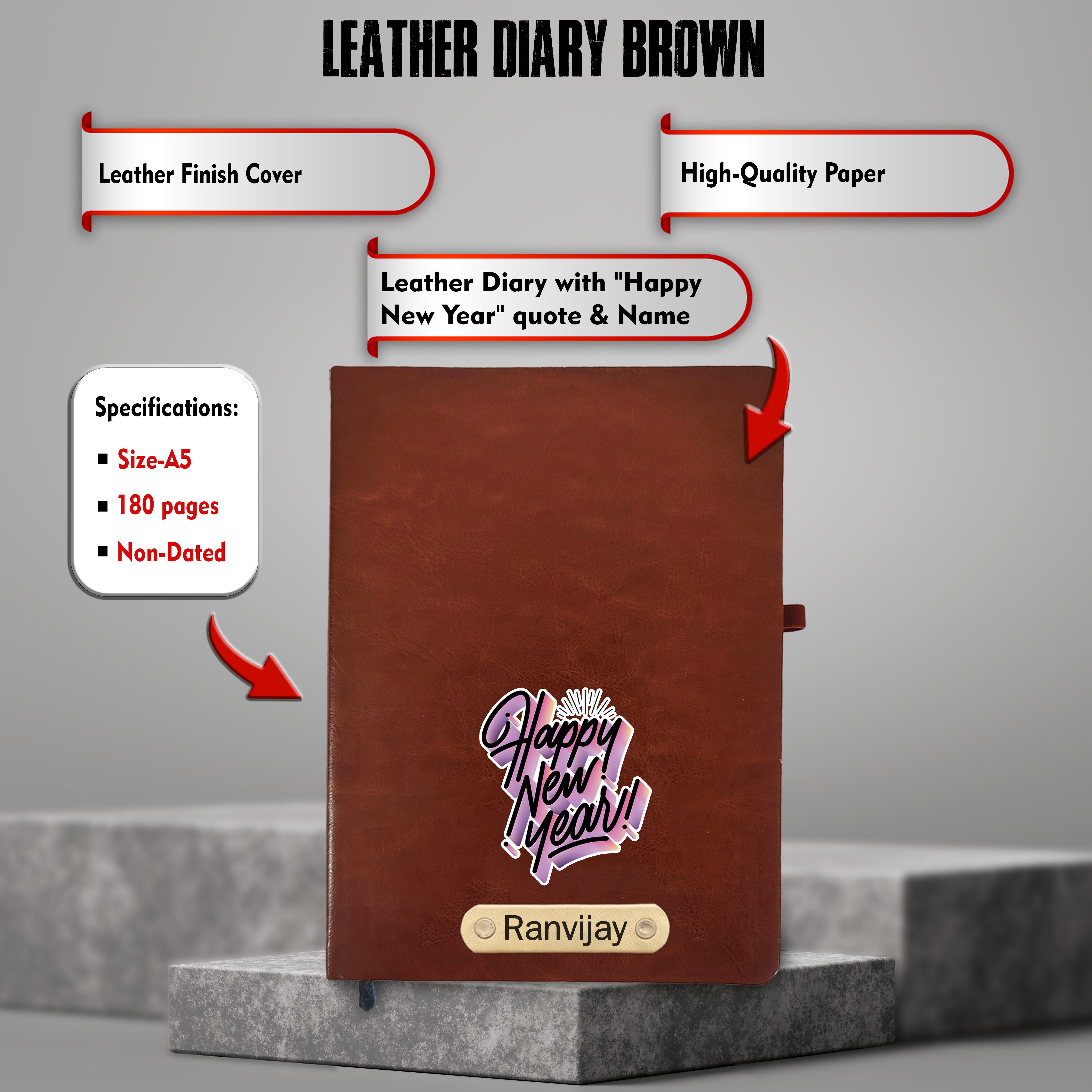 • Premium New Year Gift Set: Includes a beautifully designed diary with a Happy New Year quote and an engraved pen with "Dream. Believe. Achieve." for daily motivation.