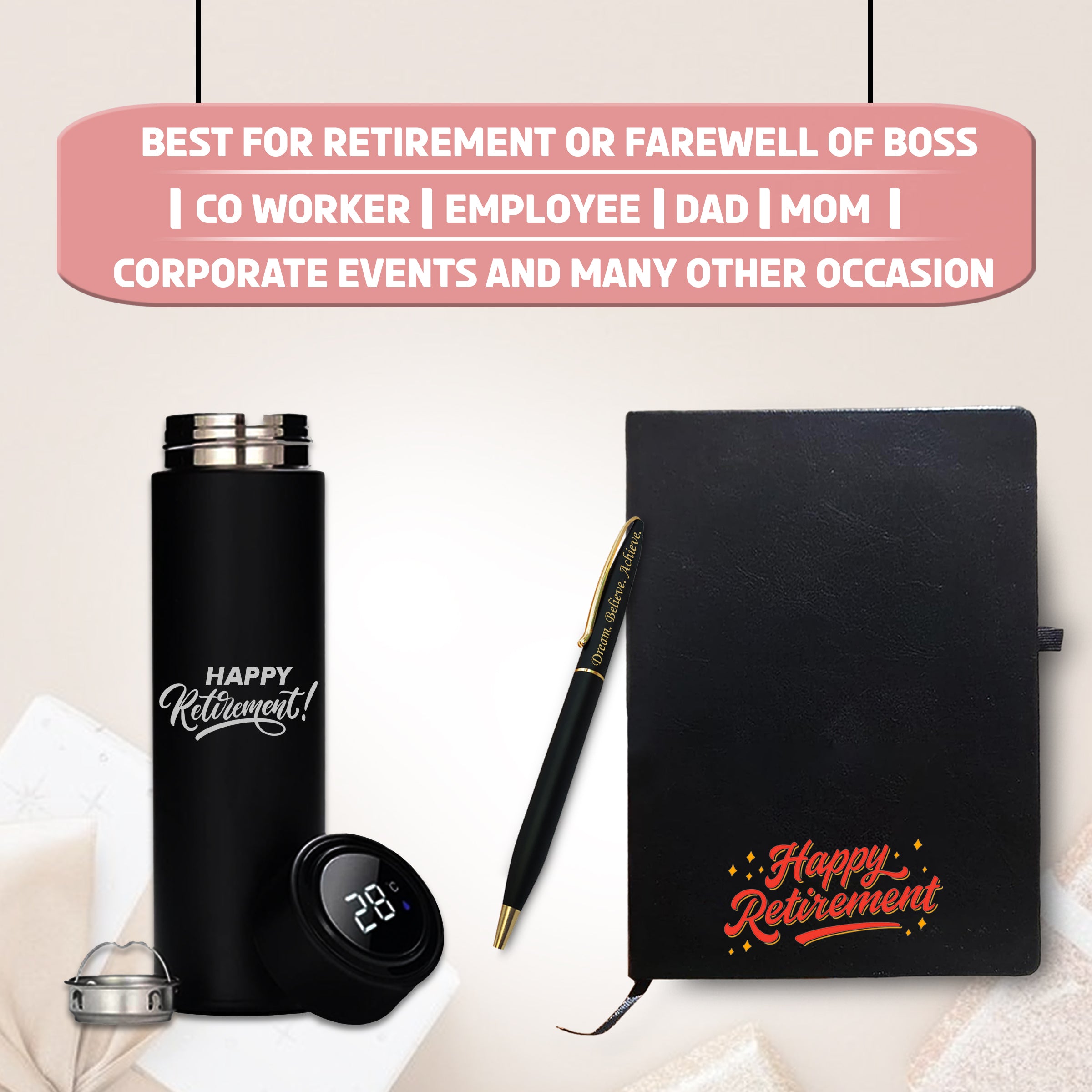 • Perfect Retirement Gift Set – A beautifully curated 3-piece set, ideal for men and women retiring from any profession.