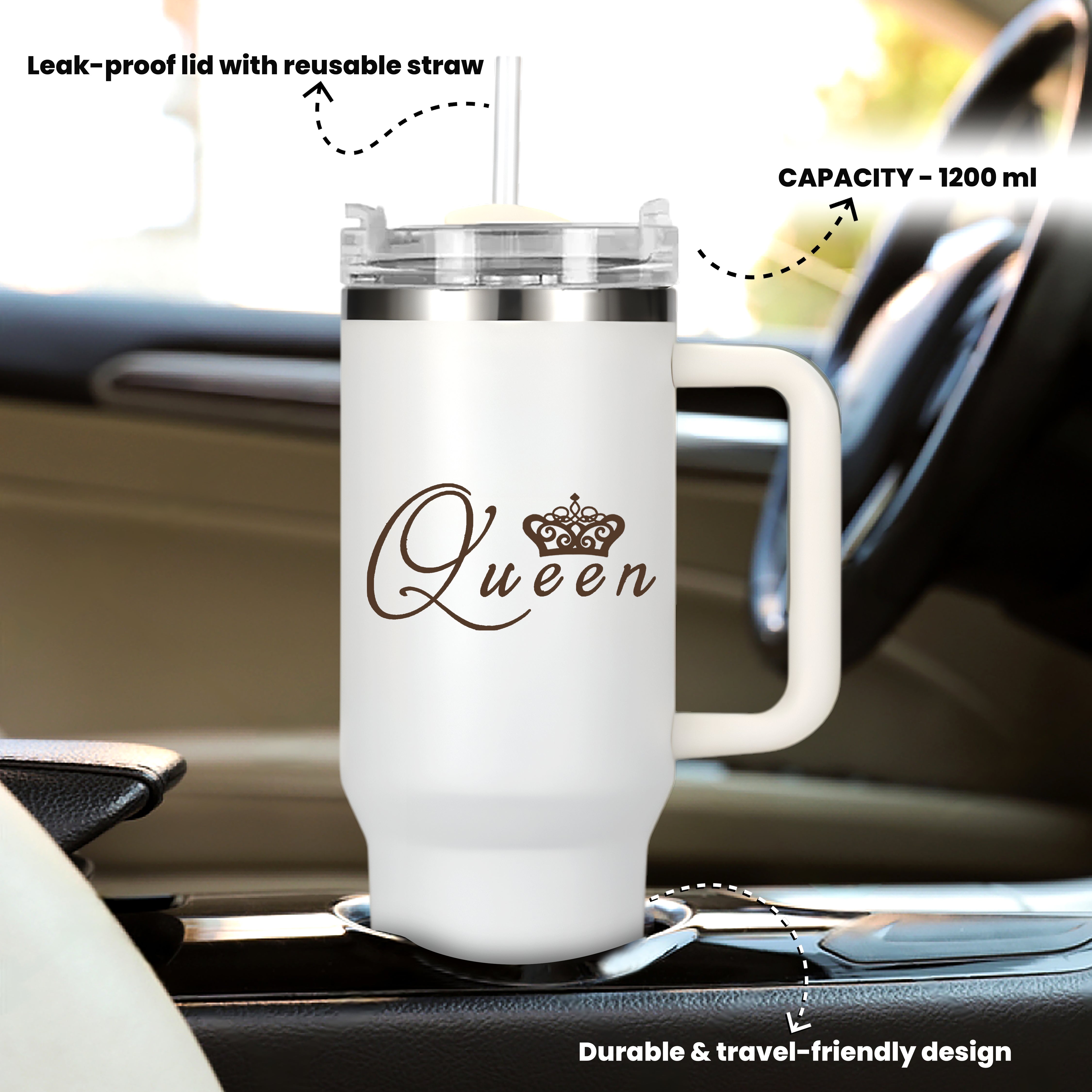 Elegant white tumbler featuring a classy and durable Queen design—perfect for women who enjoy stylish and empowering accessories.