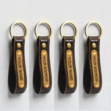 Leather Keychain Set of 2 with Custom Name, House Number & Mobile Number Engraved